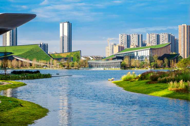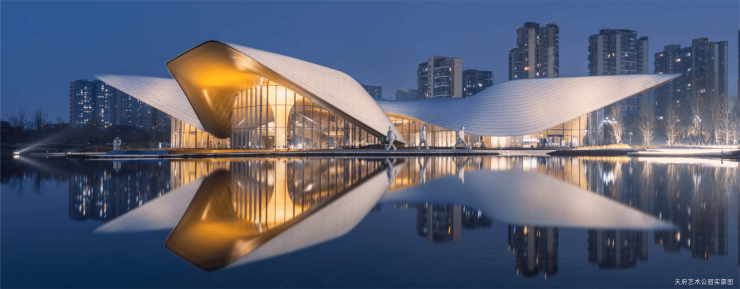 天府人文艺术图书馆、天府美术馆、当代艺术馆,将自然景观与艺术场馆融为一体,构成集艺术展览、公众教育、作品收藏、学术研究、文献阅读、社交休闲等多元功能为一体的文化集群。